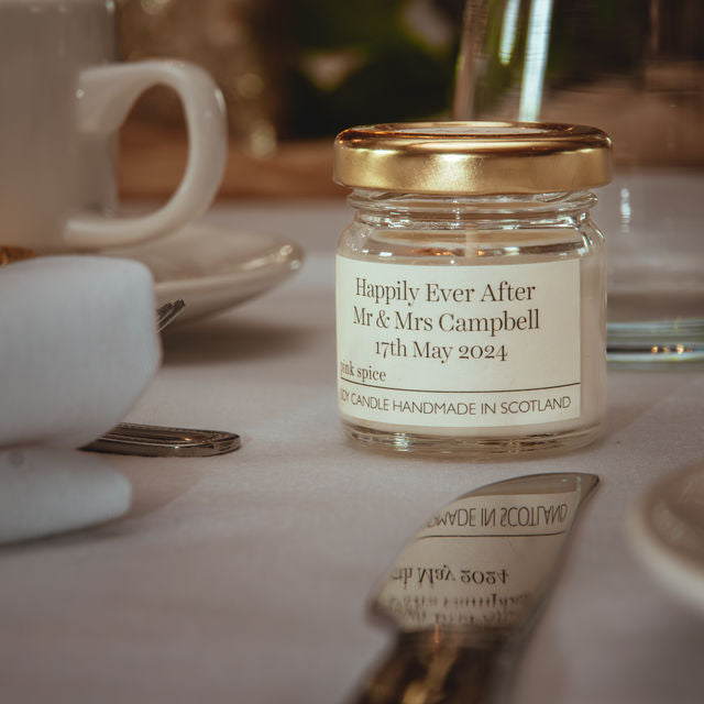 Sure, you could go for chocolates or a mini bottle of prosecco. But your guests will likely eat or drink those within the hour. Our candles are designed to be kept - a gentle reminder of your big day every time they're lit.